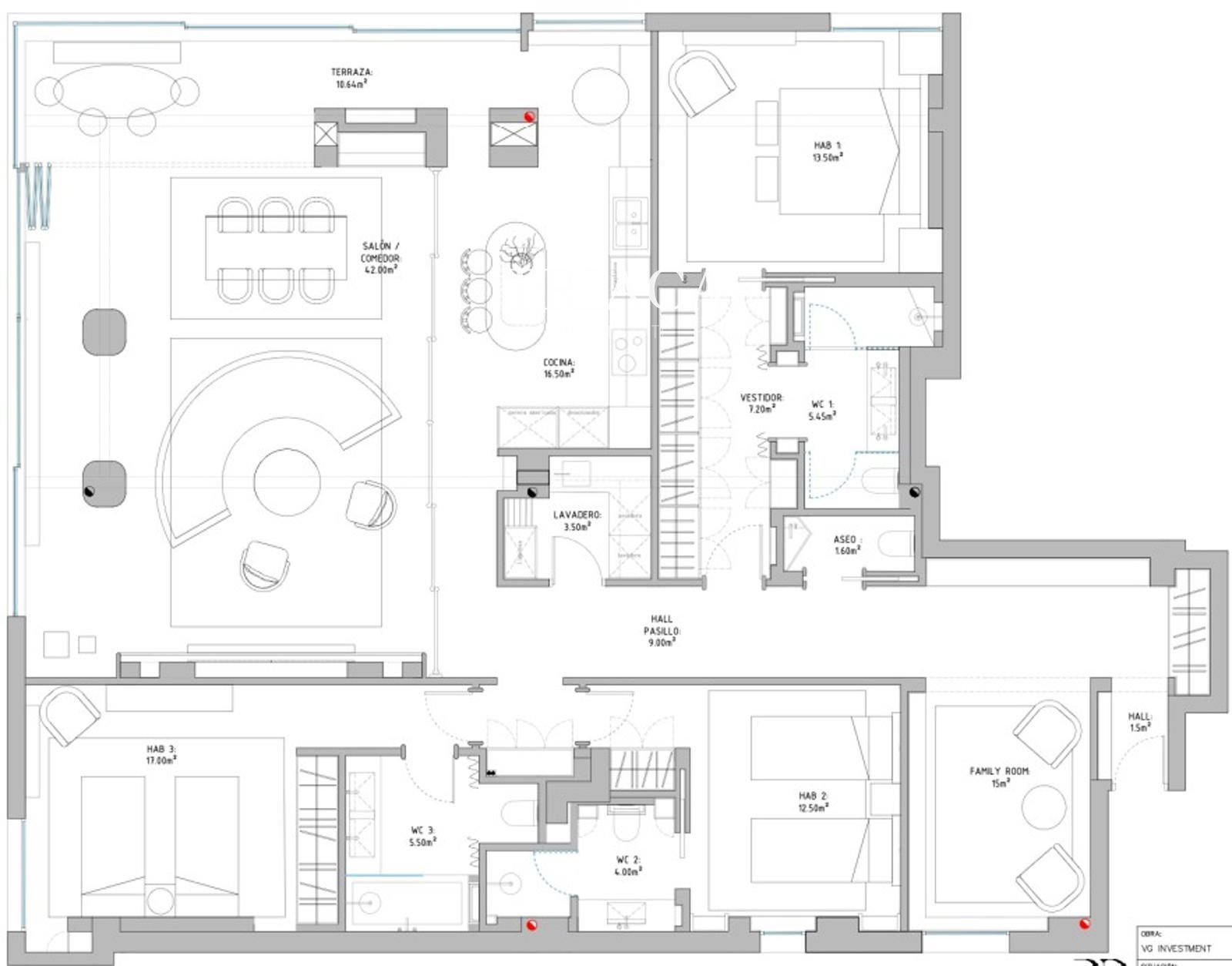 Flat for sale in Madrid, with 234 m2, 3 rooms and 4 bathrooms, Lift, Furnished and Air conditioning.