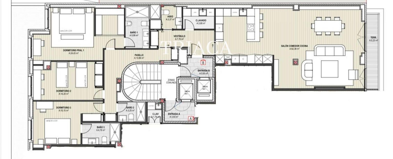 La propiedad ha sido diseñada para ofrecer espacios amplios y funcionales, destacando una gran zona social que se convierte en el eje de la vivienda, ideal para el día a día y para recibir invitados en un entorno sofisticado.