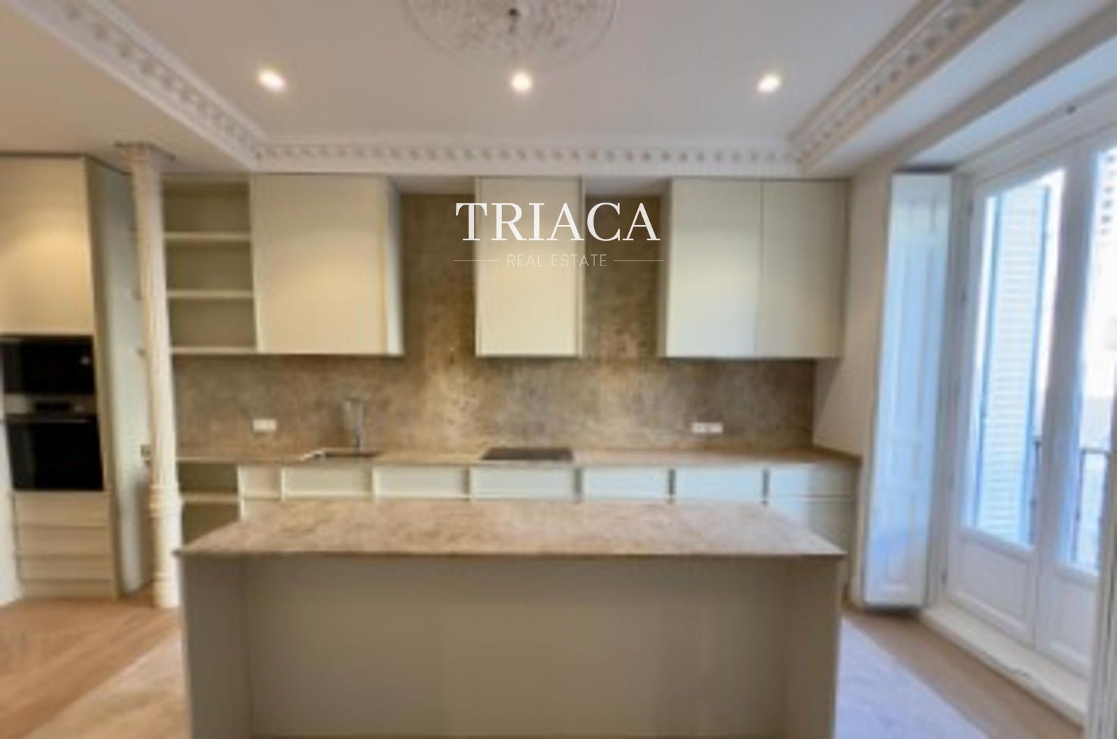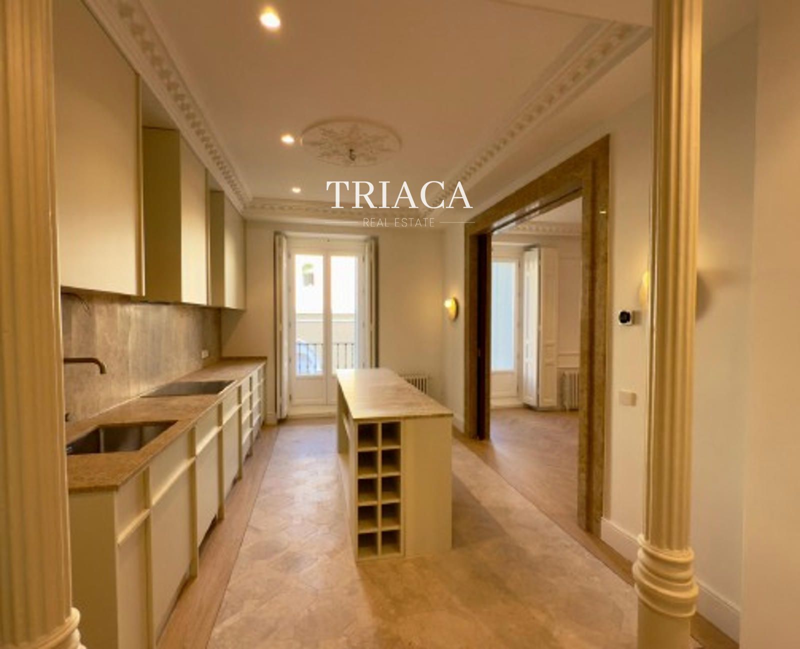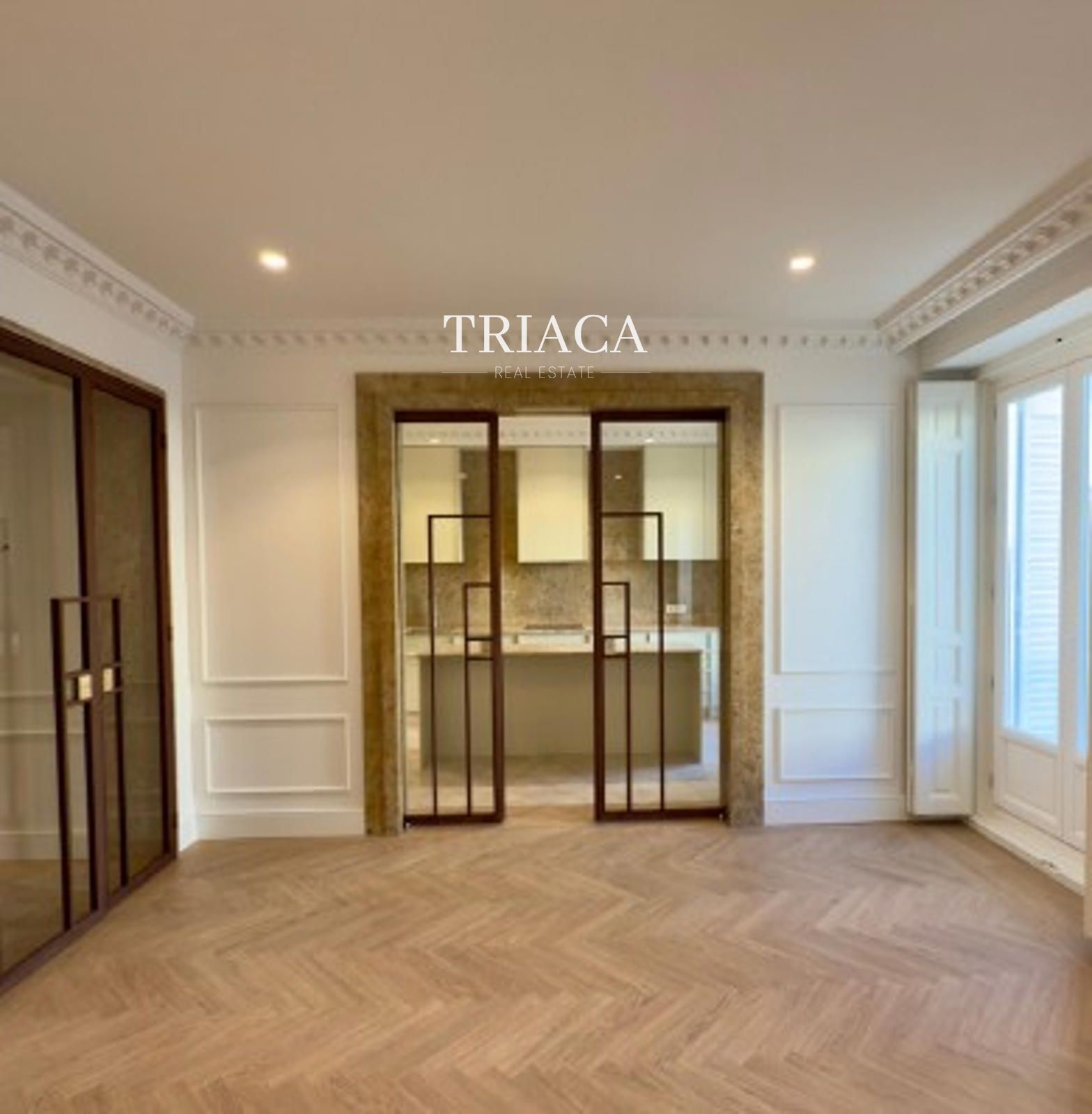 La propiedad ha sido reformada con materiales de alta calidad y conserva el encanto de la arquitectura clásica madrileña, con techos altos, estancias amplias y cuatro balcones a la calle que llenan de luz natural cada espacio gracias a su orientación oeste.