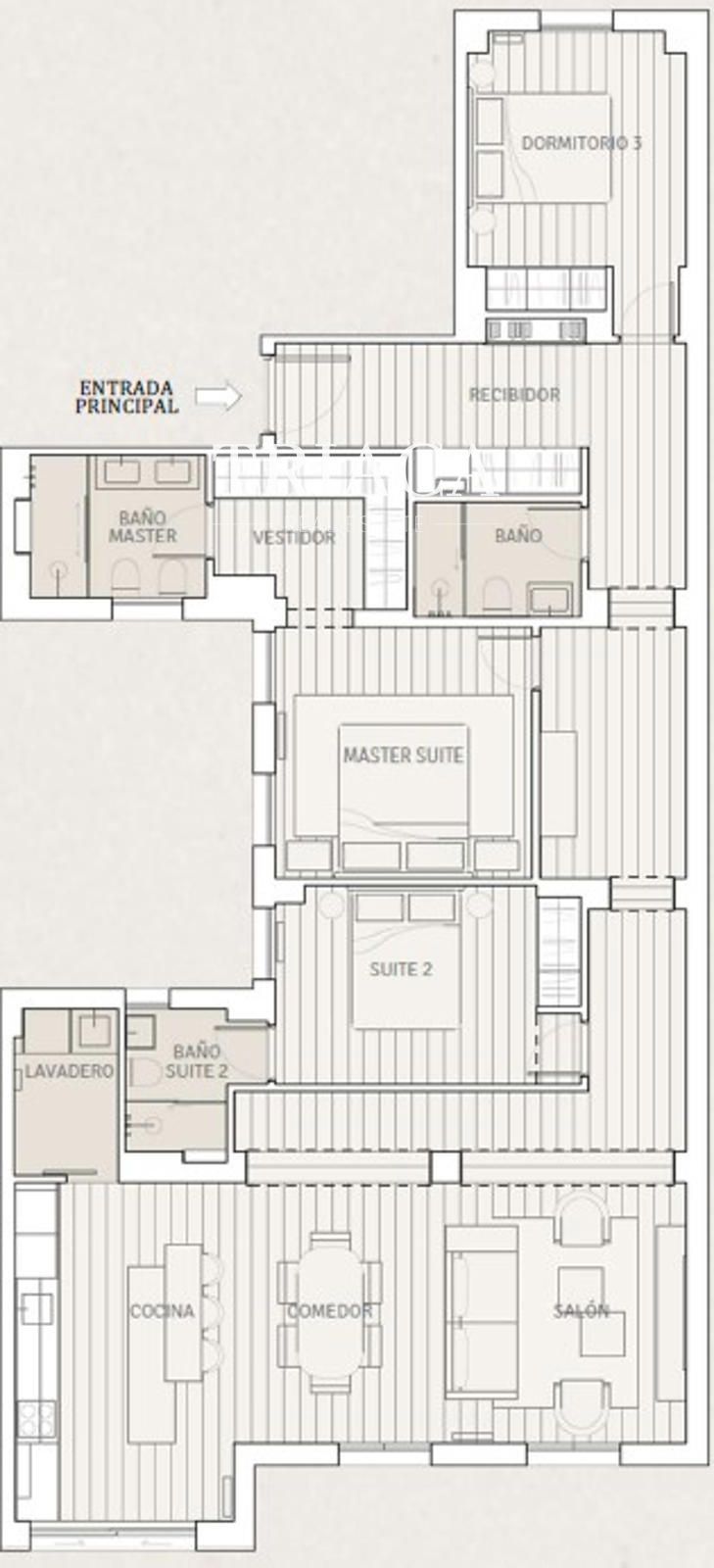 Cuenta con tres amplios dormitorios y tres baños, dos de ellos en suite, además de una distribución funcional que combina elegancia y confort. El salón-comedor, de amplios ventanales, ofrece un espacio sofisticado y acogedor, mientras que la cocina, moderna y totalmente equipada, integra diseño y practicidad.