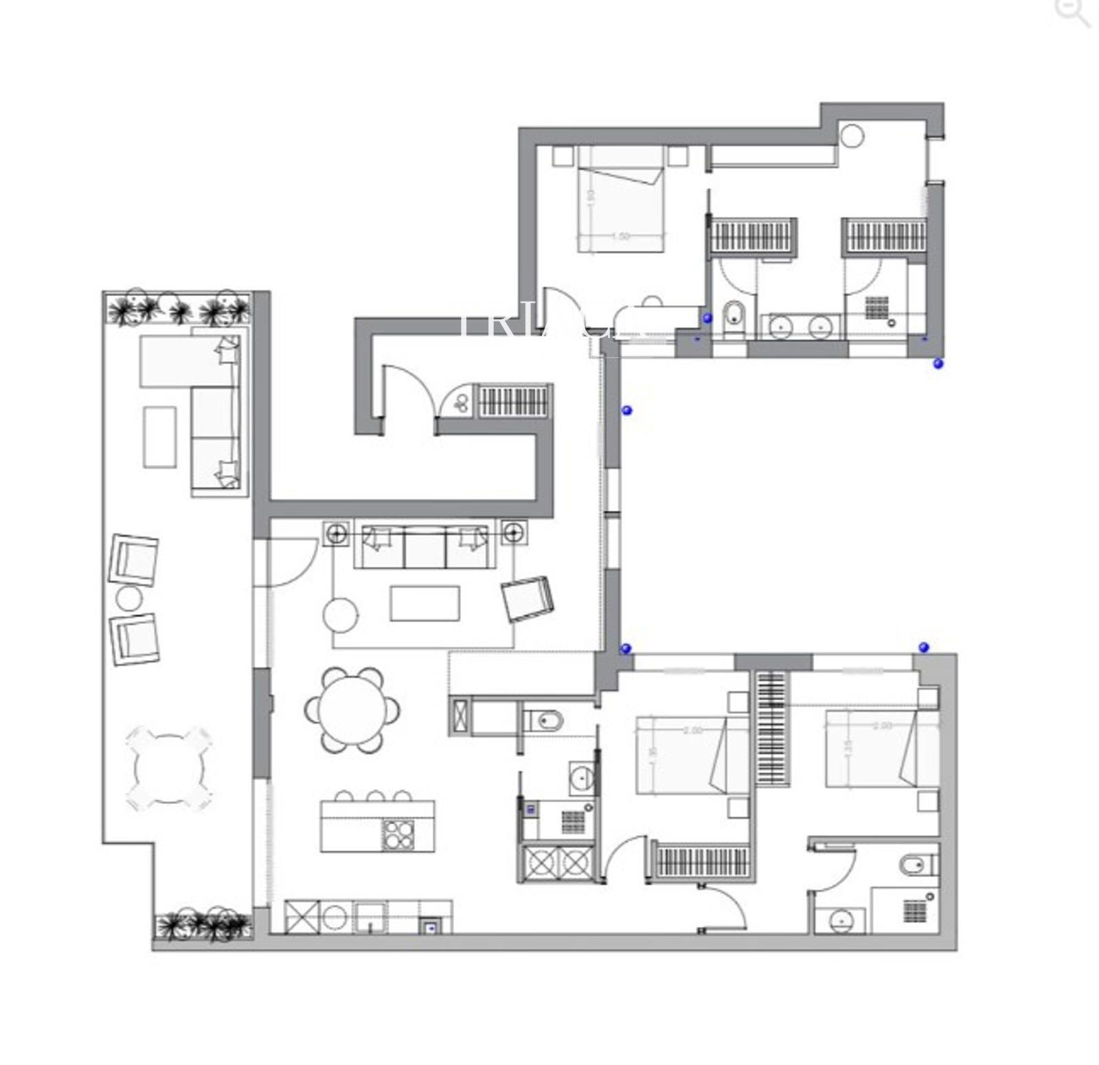 La zona social del piso es un verdadero deleite, con un amplio y luminoso salón que se abre hacia la terraza, permitiendo disfrutar de la luz natural y el aire fresco. La cocina, equipada con electrodomésticos de alta gama, se presenta como un espacio funcional y moderno, ideal para los amantes de la gastronomía.
