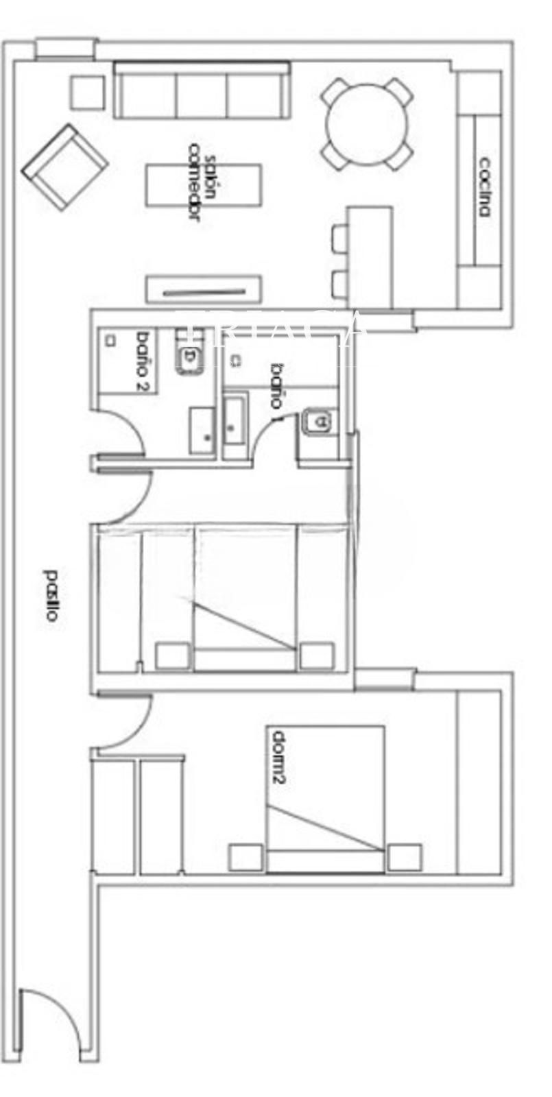 La vivienda dispone de 2 dormitorios, siendo el principal con baño privado, y 2 baños completos en total. Cuenta con armarios empotrados y una orientación oeste, que garantiza una agradable luz natural por la tarde.
