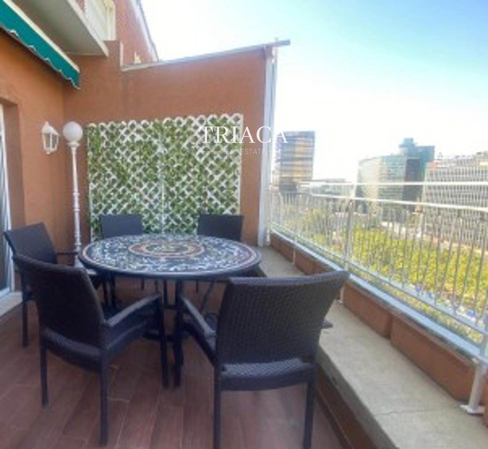 La terraza, orientada al oeste, permite disfrutar de agradables puestas de sol y vistas abiertas sobre el entorno, convirtiéndose en uno de los rincones más especiales de la vivienda.