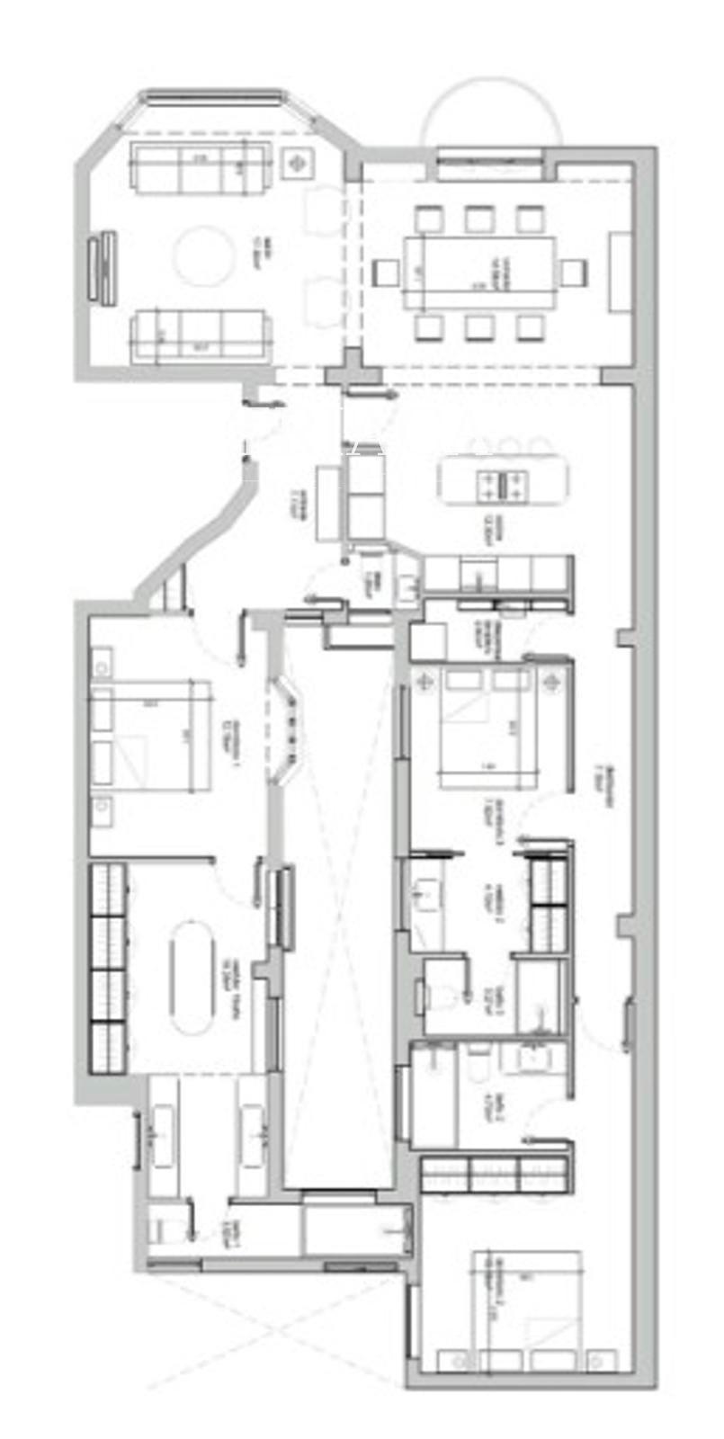 Dispone de tres amplios dormitorios, todos con baño, que garantizan privacidad y confort, además de un aseo de cortesía. Las estancias cuentan con techos altos, grandes ventanales y armarios empotrados, elementos que aportan amplitud y funcionalidad.