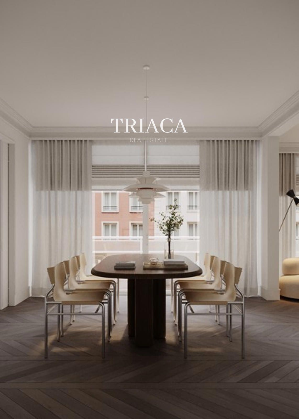 Impresionante propiedad de 345 m², situada en una tercera planta exterior de una finca representativa en el prestigioso barrio de Castellana, dentro del Barrio de Salamanca.