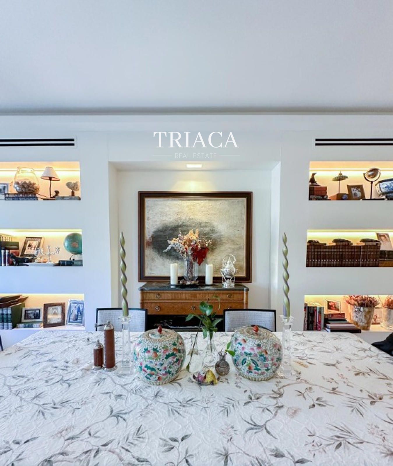 La distribución se completa con un hall de entrada representativo, un salón amplio conectado al comedor, una acogedora terraza, cocina equipada, despacho o estudio independiente y zonas de almacenamiento bien resueltas. La orientación oeste garantiza luz natural durante las horas de la tarde, creando espacios cálidos y agradables.