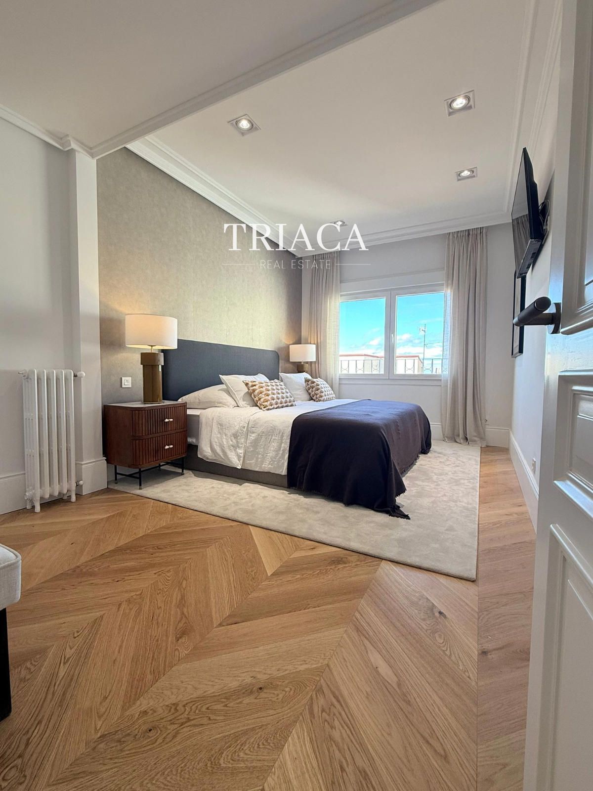 En la zona de descanso se encuentran tres amplios dormitorios y tres baños completos, además de un aseo de cortesía. Su diseño elegante y la amplitud de sus estancias hacen de esta vivienda una oportunidad única para quienes buscan confort, exclusividad y luminosidad en una de las direcciones más distinguidas de Madrid.