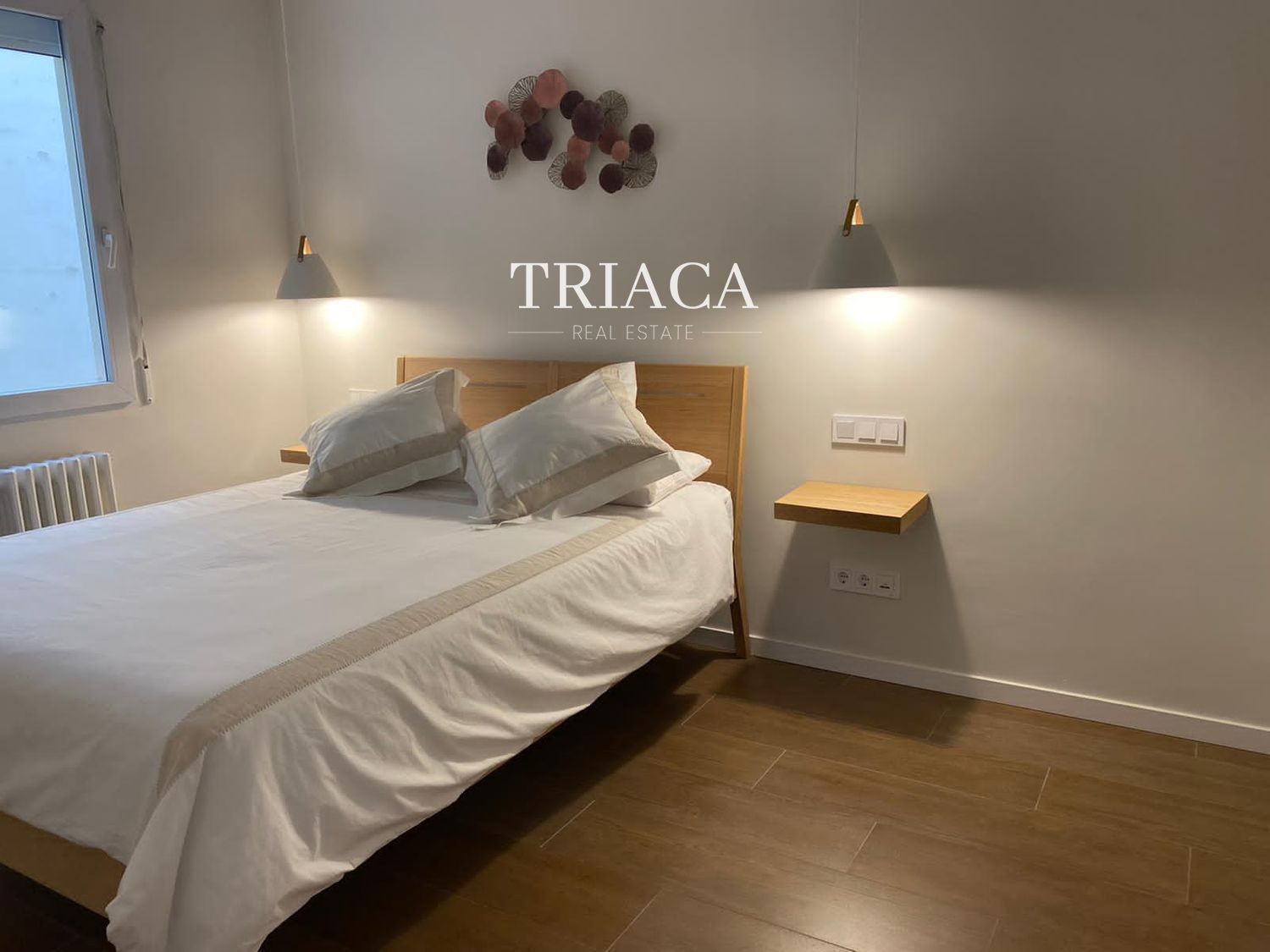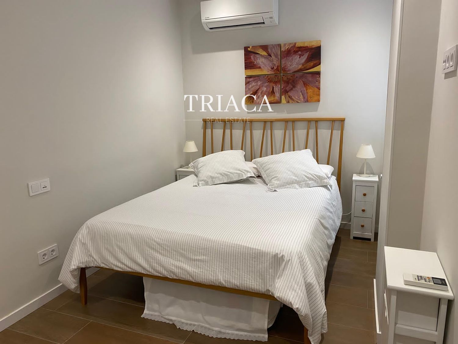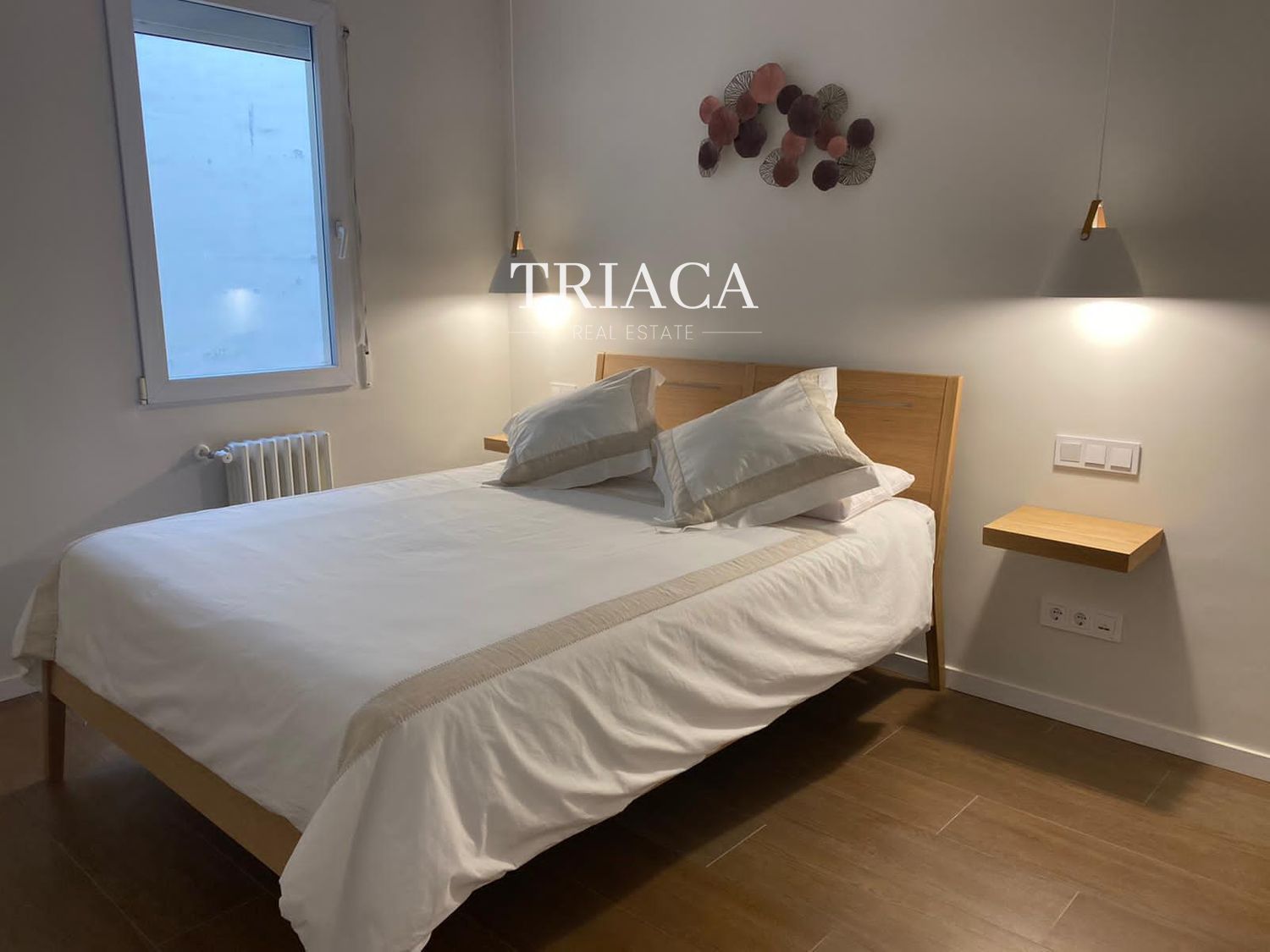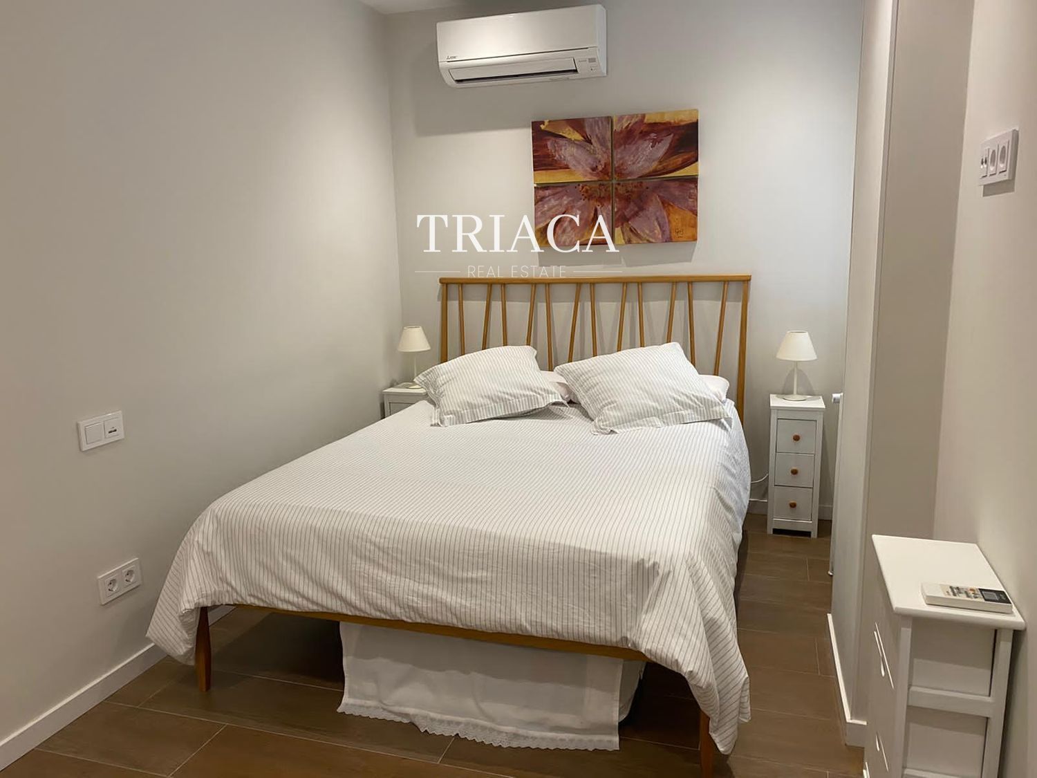 La distribución incluye dos dormitorios y dos baños, además de un salón luminoso con una estética cuidada y armarios empotrados que optimizan el espacio. La cocina y los baños han sido actualizados para ofrecer funcionalidad y una línea moderna. La vivienda cuenta con calefacción individual por gas natural, lo que aporta eficiencia y control térmico durante todo el año.