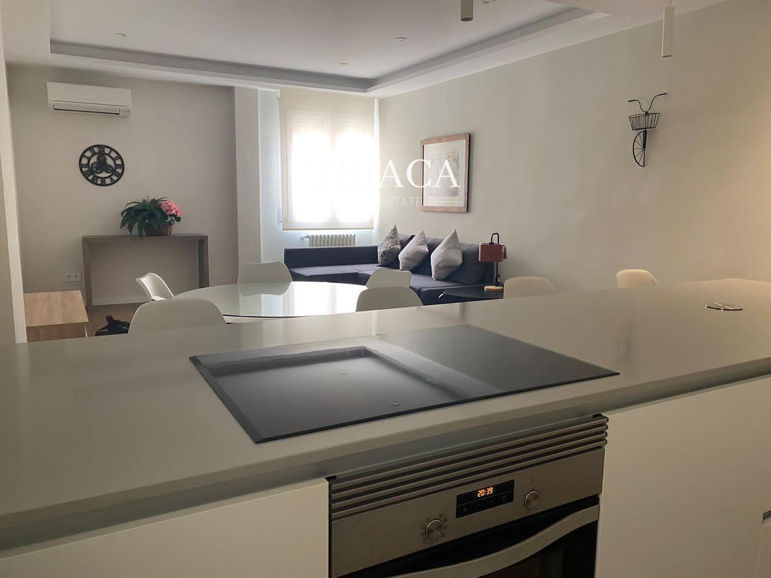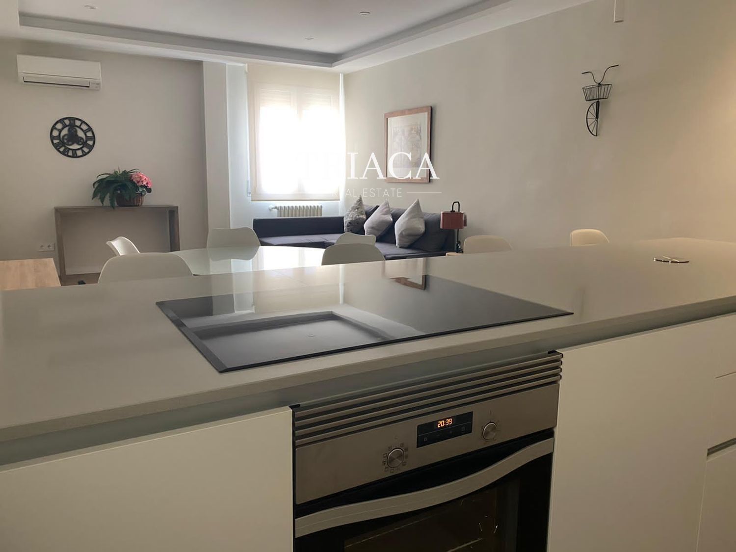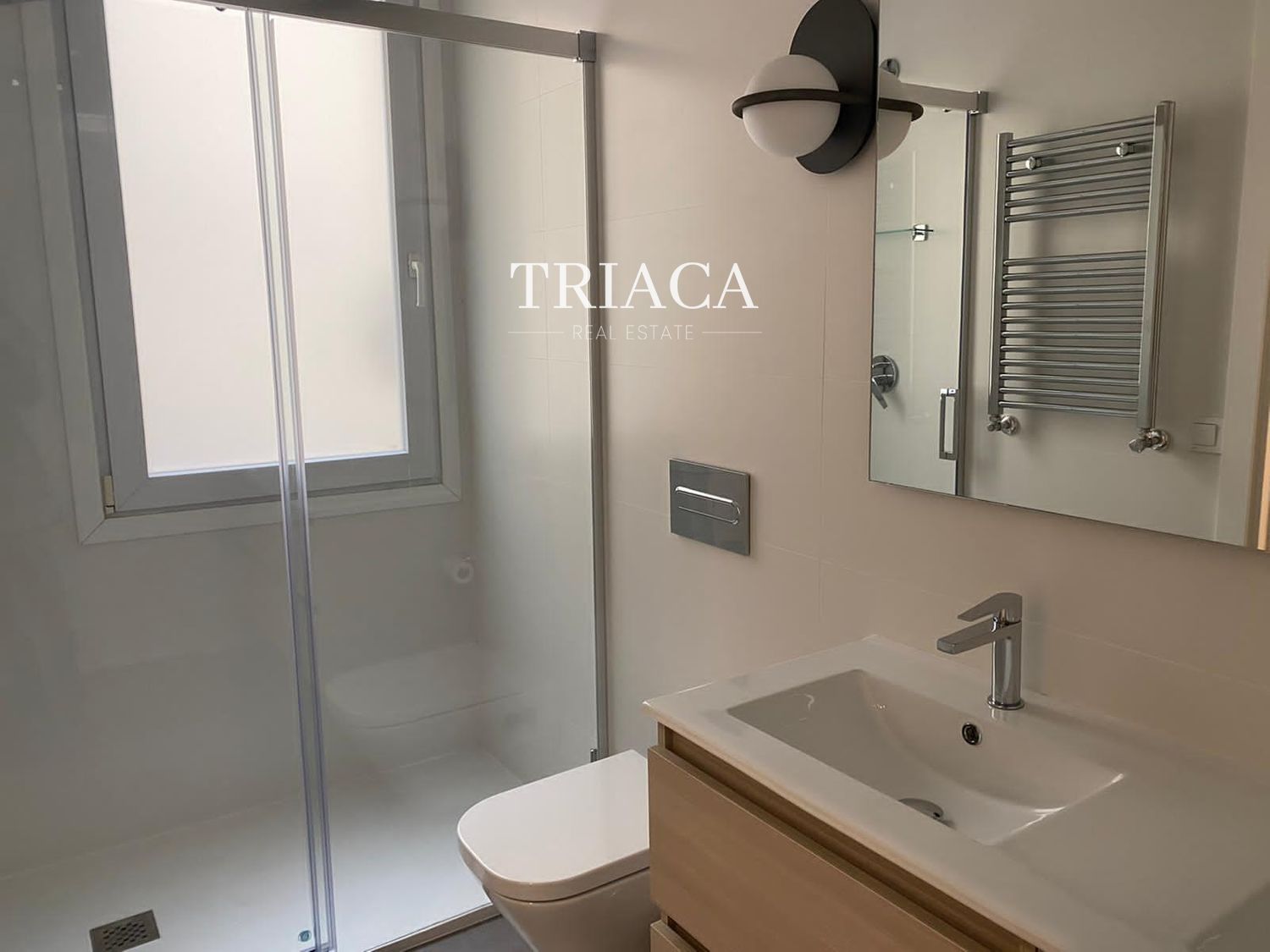 La distribución incluye dos dormitorios y dos baños, además de un salón luminoso con una estética cuidada y armarios empotrados que optimizan el espacio. La cocina y los baños han sido actualizados para ofrecer funcionalidad y una línea moderna. La vivienda cuenta con calefacción individual por gas natural, lo que aporta eficiencia y control térmico durante todo el año.