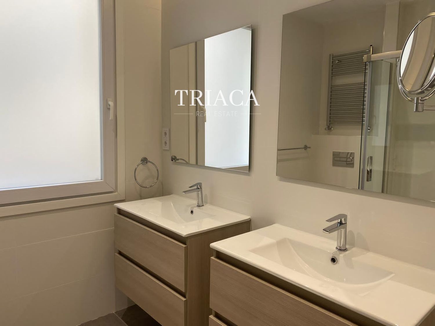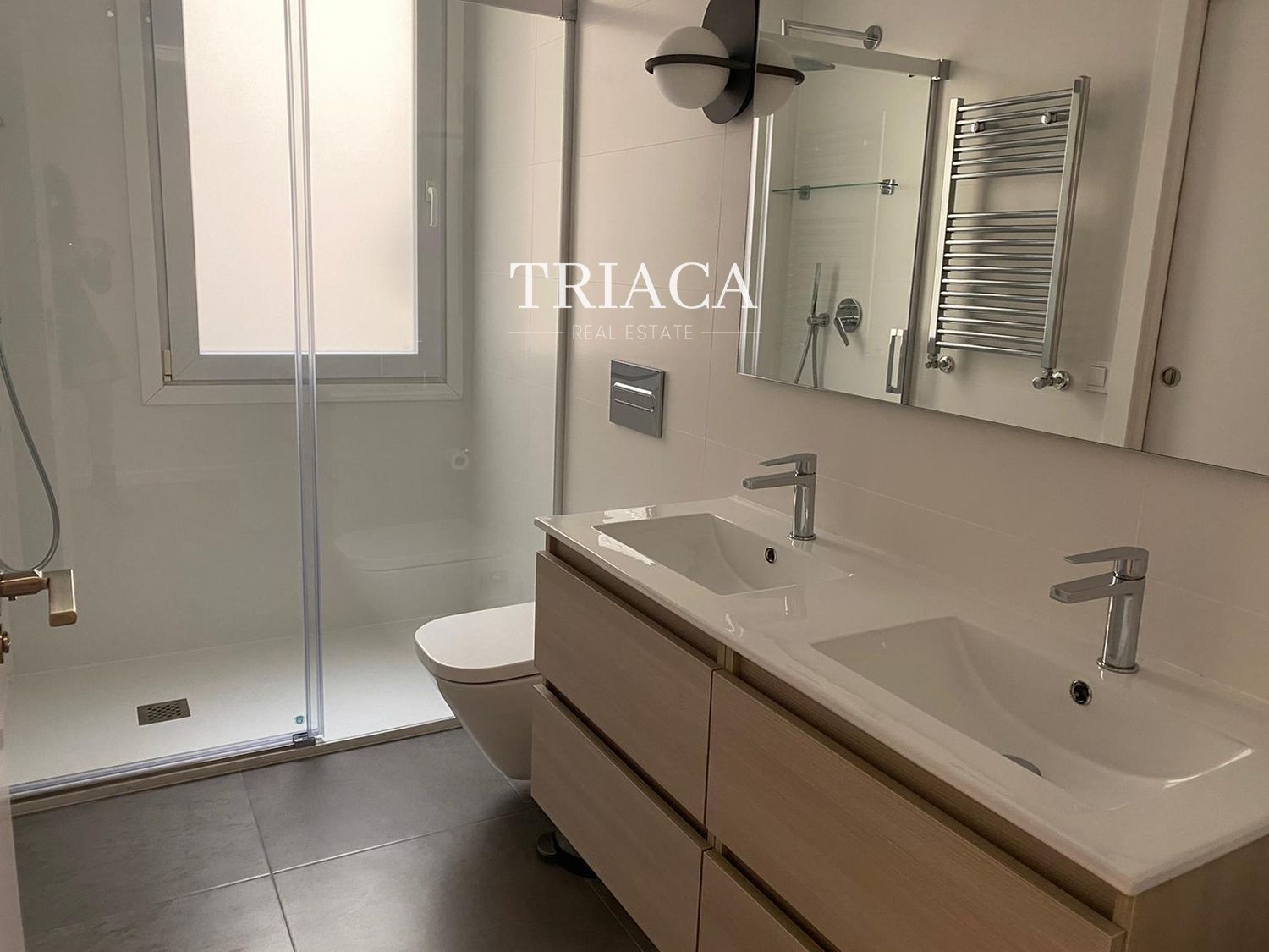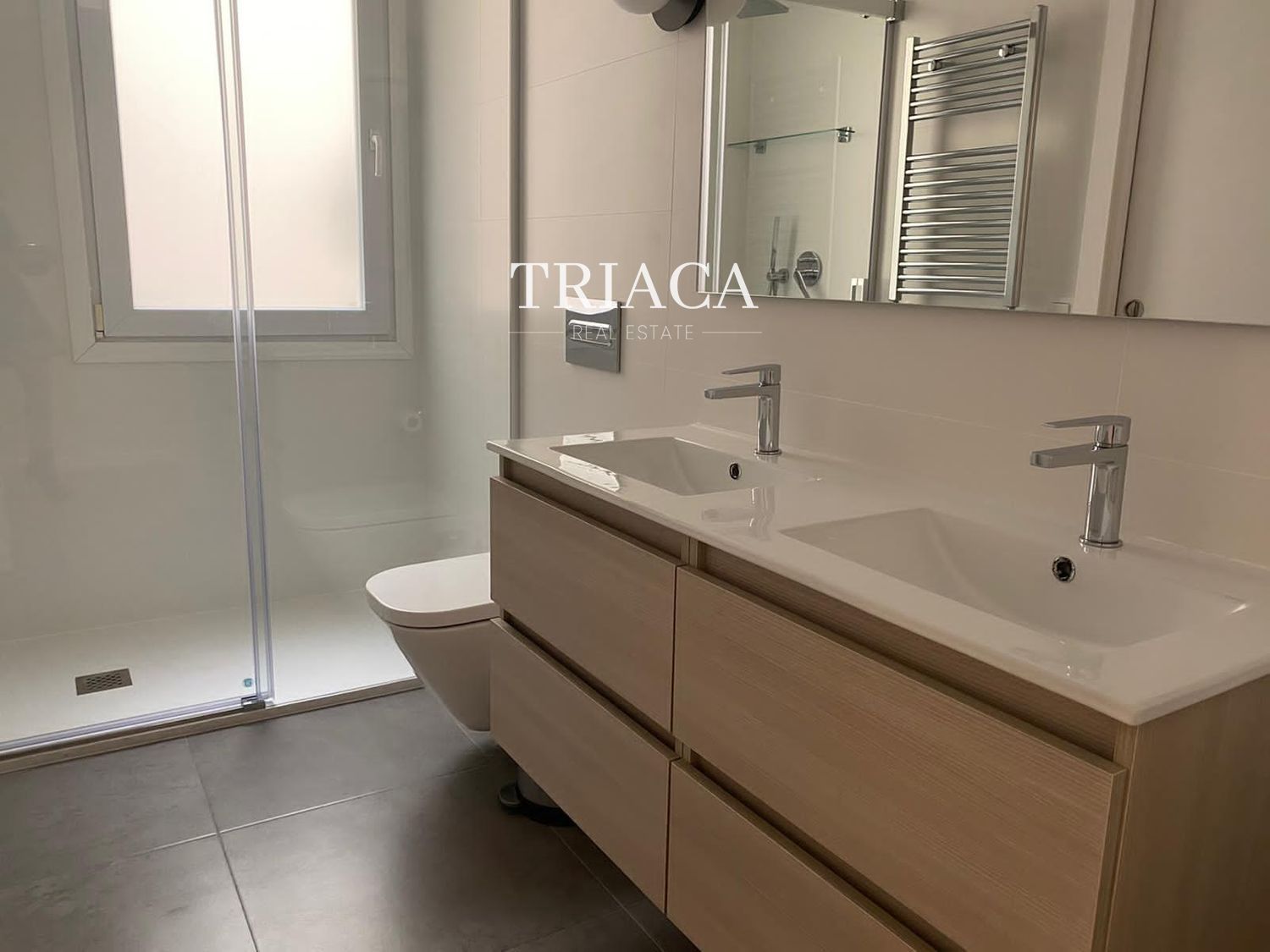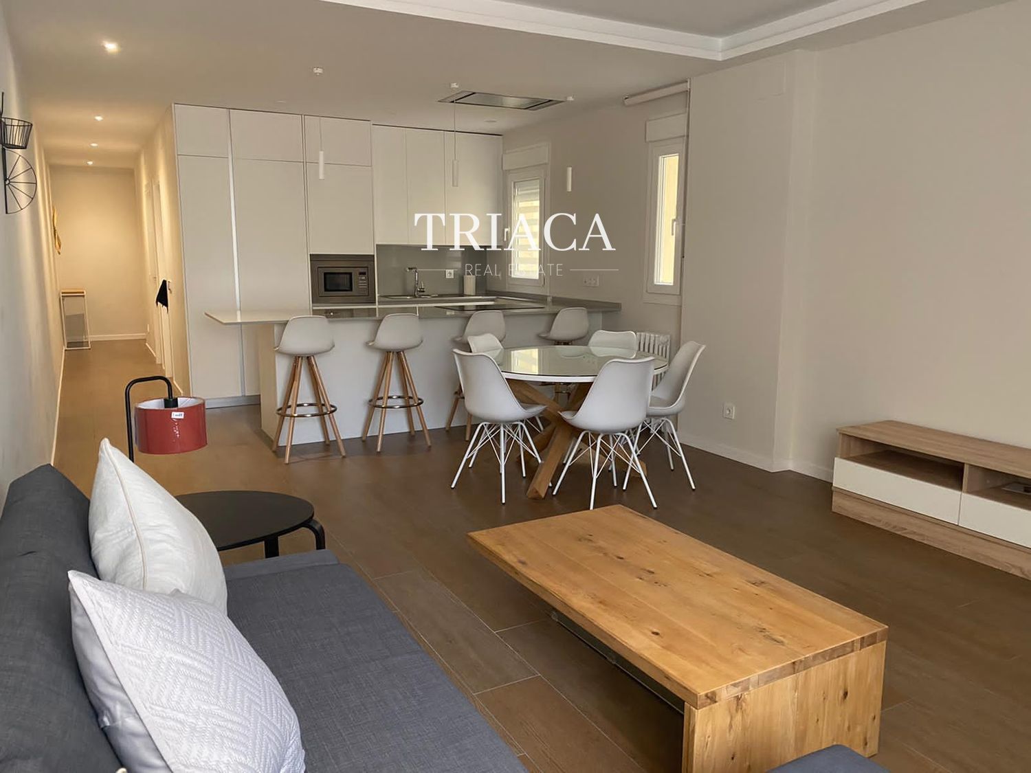 La distribución incluye dos dormitorios y dos baños, además de un salón luminoso con una estética cuidada y armarios empotrados que optimizan el espacio. La cocina y los baños han sido actualizados para ofrecer funcionalidad y una línea moderna. La vivienda cuenta con calefacción individual por gas natural, lo que aporta eficiencia y control térmico durante todo el año.