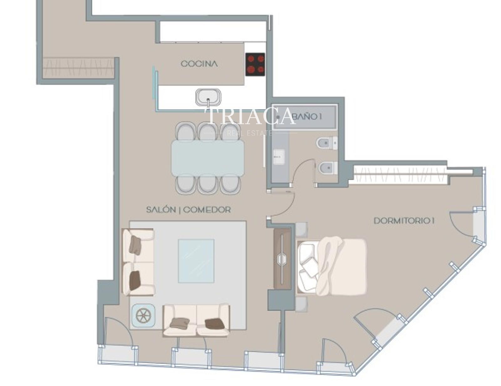 La vivienda cuenta con un dormitorio y un baño, además de una distribución equilibrada que maximiza el espacio. Dispone de cocina equipada, tarima de madera, armarios empotrados y persianas eléctricas de aluminio, combinando diseño y comodidad. La carpintería exterior de aluminio lacado con cristales Climalit garantiza un excelente aislamiento térmico y acústico.