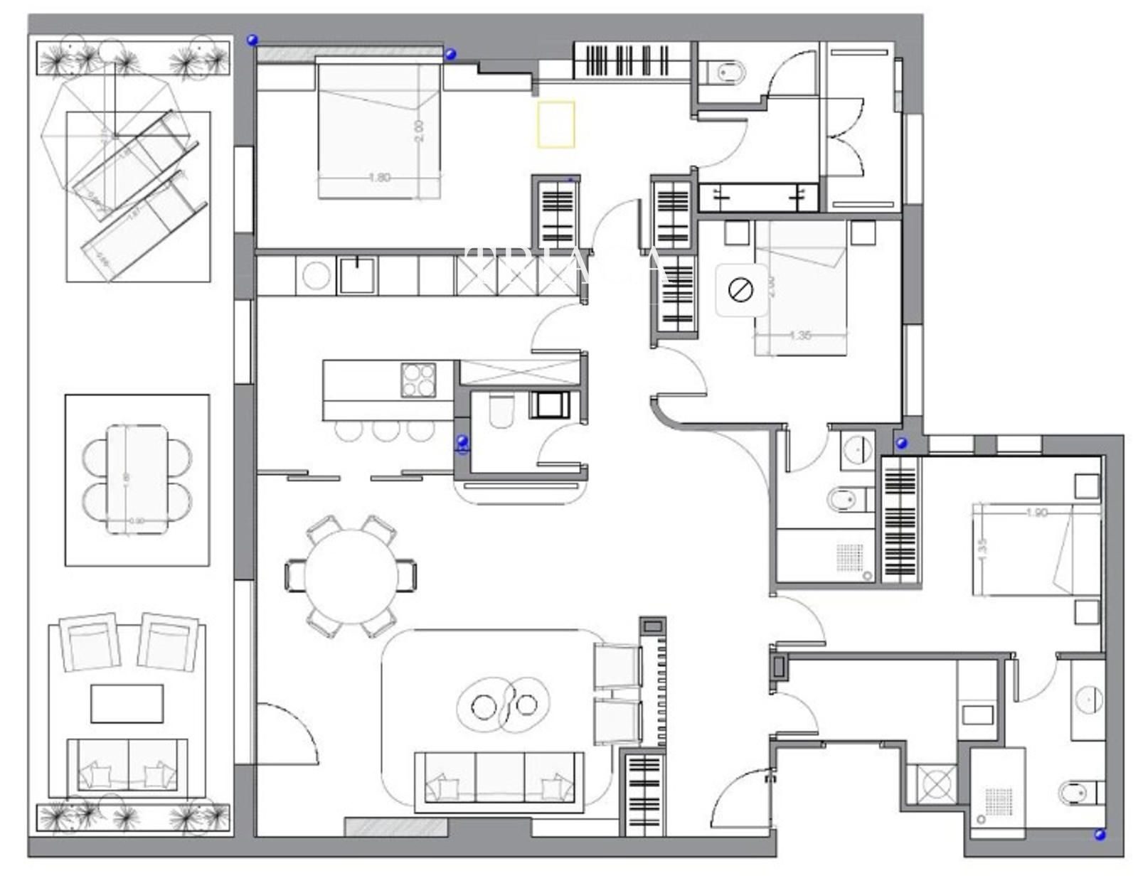 Con orientación este, la vivienda disfruta de una excelente luz natural desde primeras horas del día. La distribución ha sido diseñada para ofrecer confort y funcionalidad, con tres dormitorios, cuatro baños y una amplia zona social pensada para el disfrute diario y para recibir invitados.