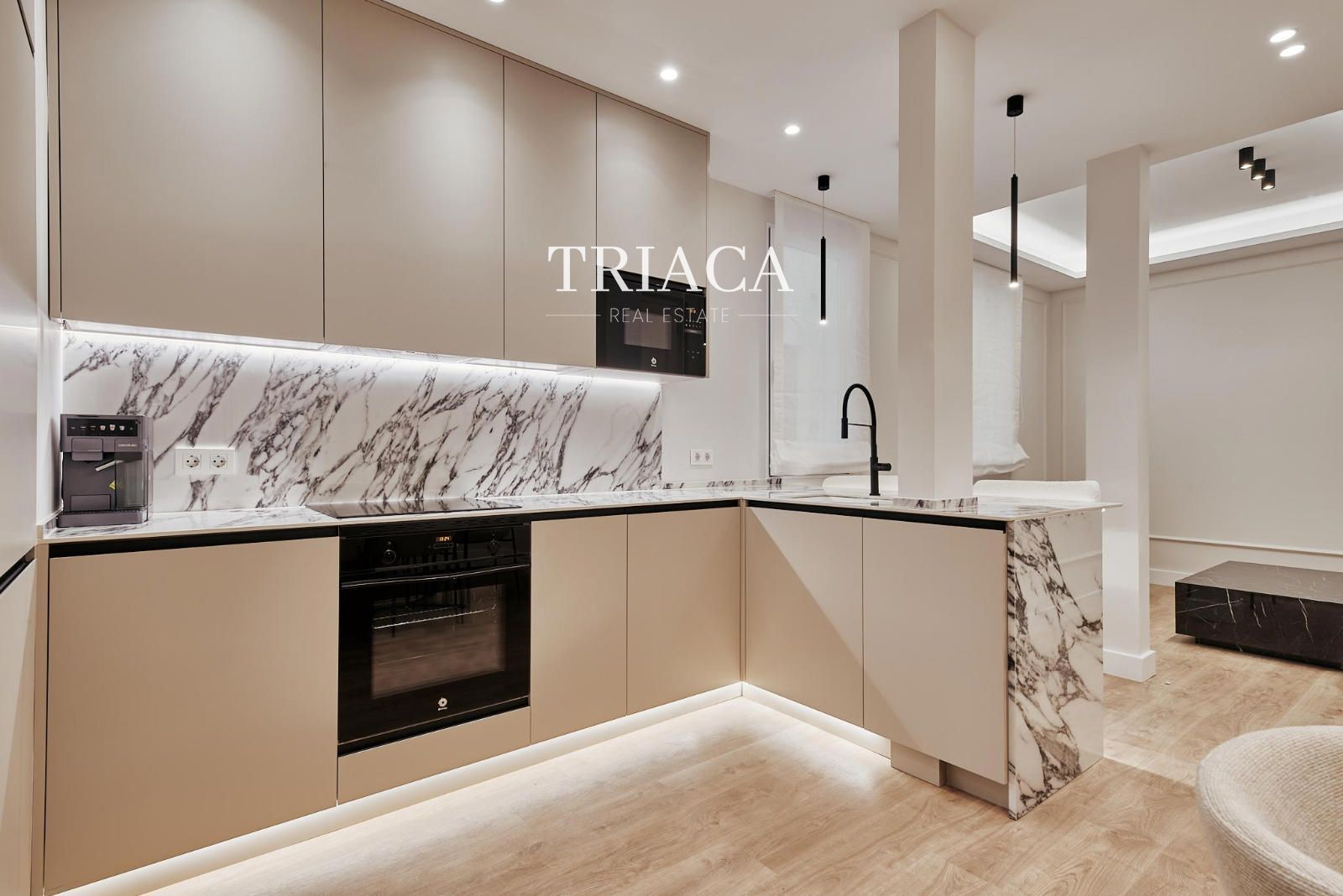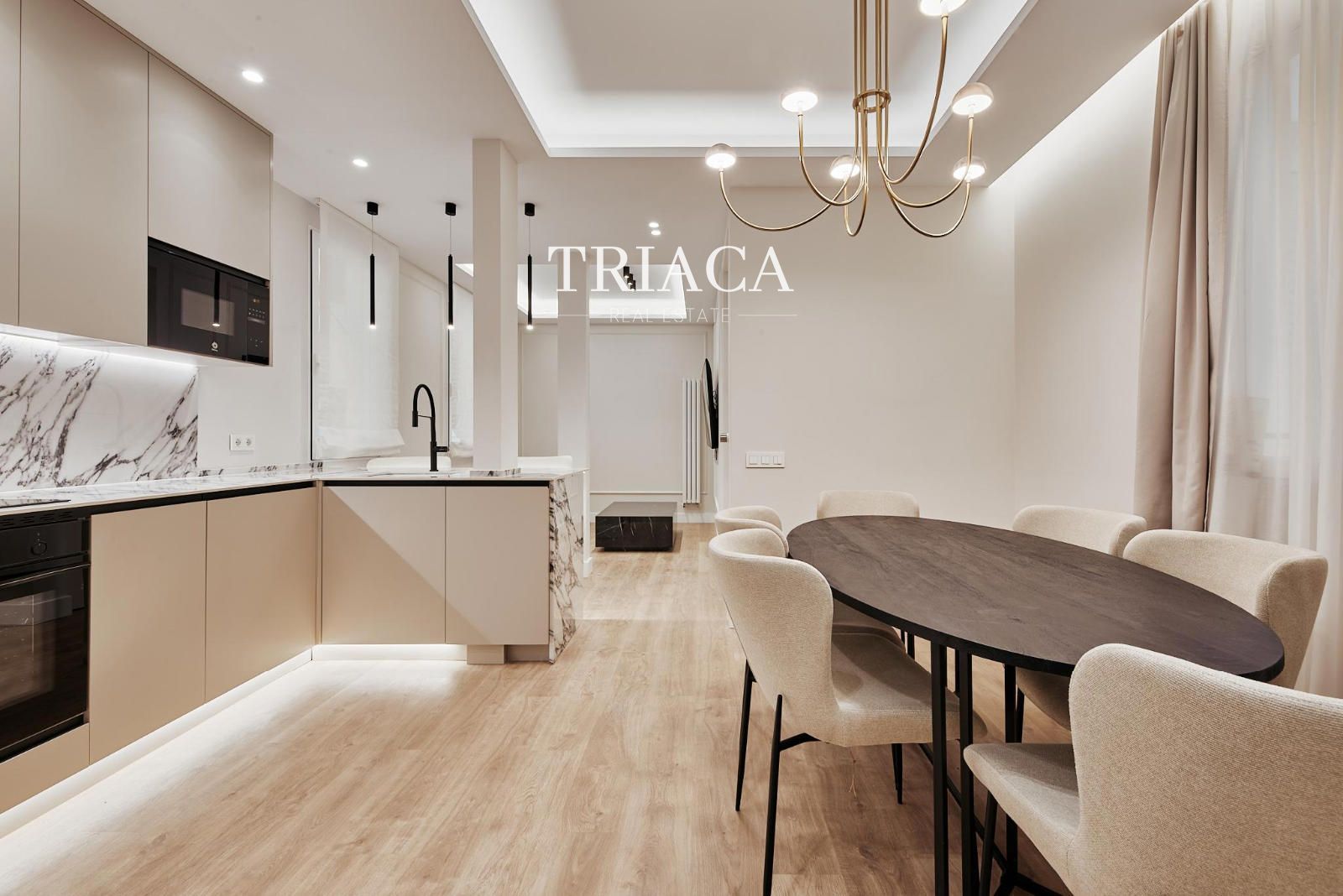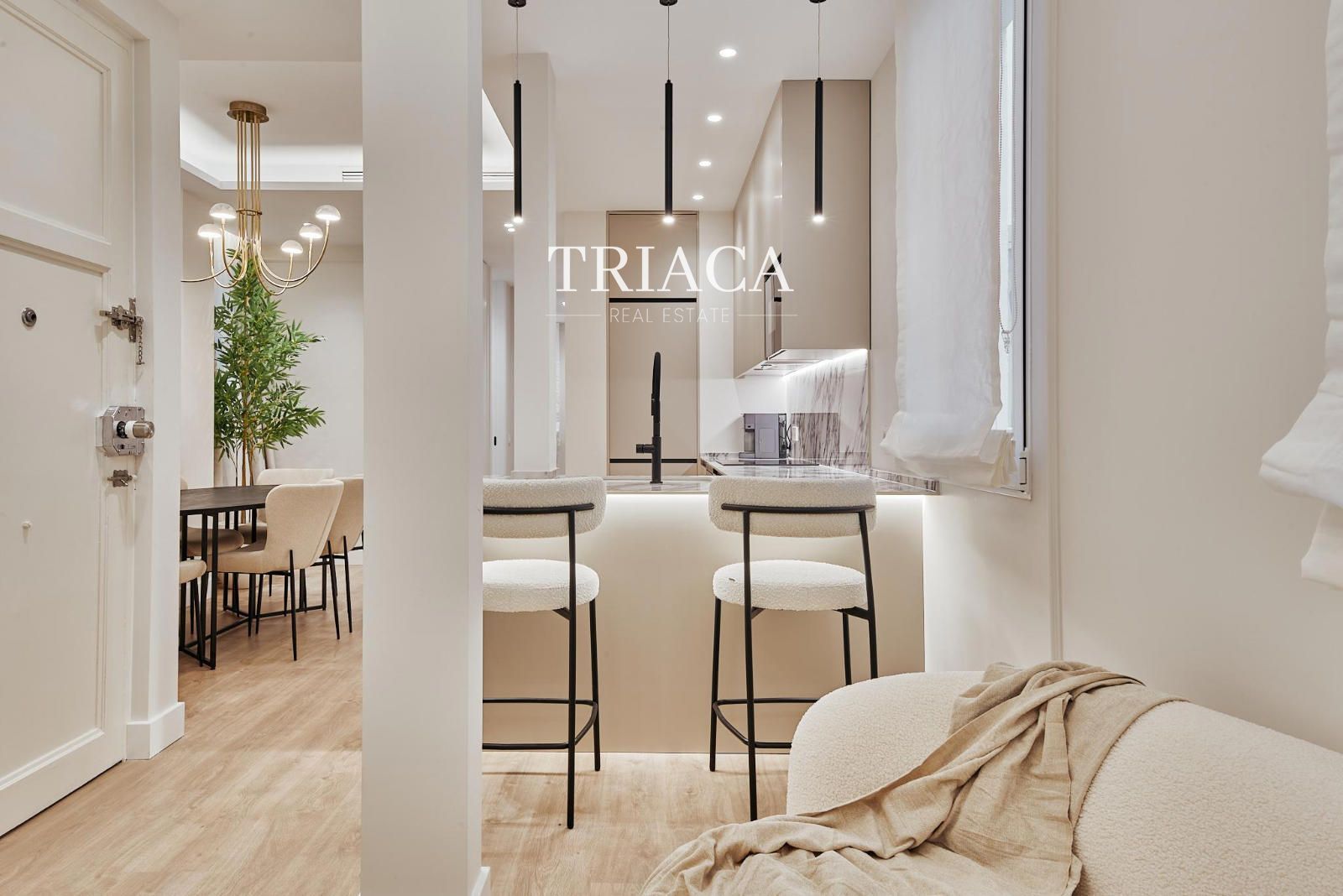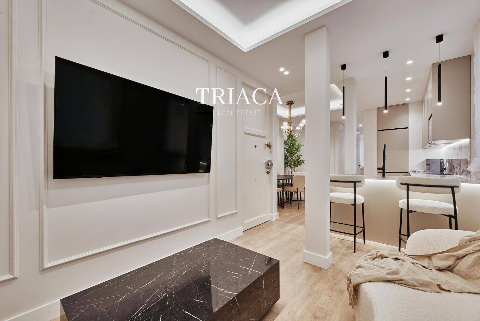 La propiedad ofrece una distribución funcional y equilibrada, con dos dormitorios dobles y dos baños completos, ideales para garantizar comodidad y privacidad. La cocina, de concepto abierto, está totalmente equipada y se integra armoniosamente con la zona de estar, creando un espacio moderno, luminoso y acogedor.
